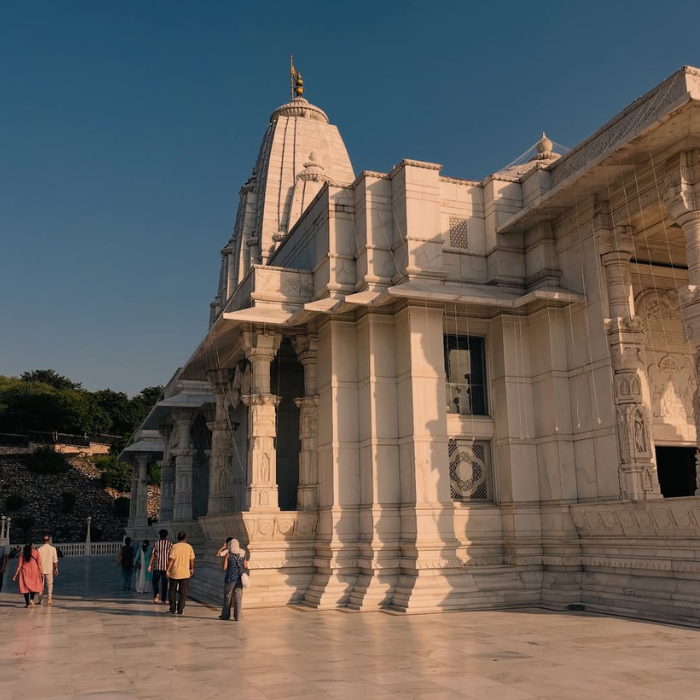 Nel pomeriggio, visiterete il Birla Mandir, un tempio moderno interamente scolpito in marmo bianco, la cui bellezza trascendentale si rivela appieno al tramonto. È un momento di pace e riflessione, quando il tempio si accende di sfumature dorate e rosate, offrendo una vista mozzafiato sulla città.