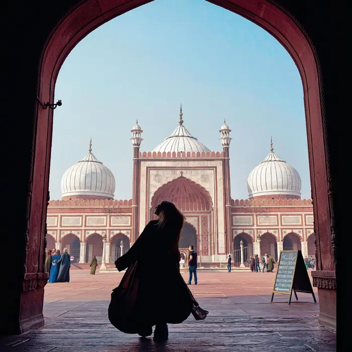 Proseguirete poi nella storica Old Delhi con la visita alla Jama Masjid, la moschea più grande dell’India, dove avrete l’opportunità di salire sul minareto per una vista mozzafiato che abbraccia la Vecchia Delhi. Successivamente, vi immergerete nel cuore pulsante della città con un giro in risciò a motore (tuk-tuk) attraverso i caotici e colorati vicoli di Chandni Chowk, un’autentica immersione sensoriale nella vita locale.